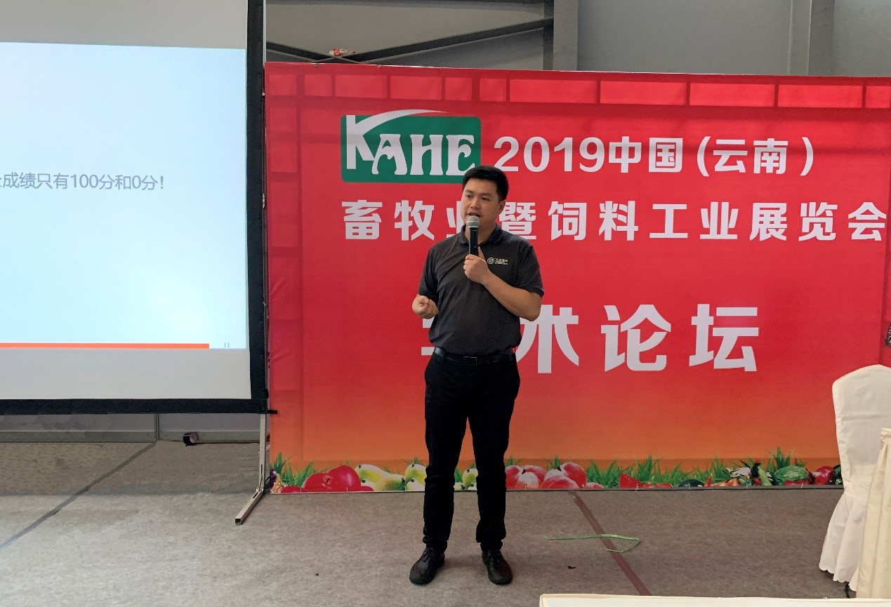 在展會(huì)同期的學(xué)術(shù)論壇上,天兆豬業(yè)營銷中心銷售部經(jīng)理李凡作了《非洲豬瘟防控與生豬復(fù)養(yǎng)》的主題演講。李經(jīng)理以豬場(chǎng)建設(shè)為切入點(diǎn),向現(xiàn)場(chǎng)客戶詳細(xì)介紹了天兆豬業(yè)“防非六模式”的關(guān)鍵控制點(diǎn),并探討了在當(dāng)前非瘟防控新形勢(shì)下如何成功復(fù)養(yǎng),表示天兆豬業(yè)愿與廣大客戶攜手同行,共抗非瘟,并為準(zhǔn)備復(fù)養(yǎng)的客戶提供優(yōu)質(zhì)種豬。