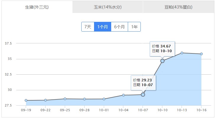 近1個月全國外三元豬價走勢圖